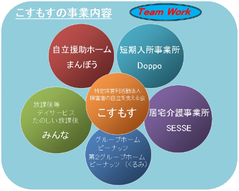 | 「障害者の自立を支える会こすもす」は1992年に発足し、2000年 にNPO法人化した組織で、障害者を持つ人々が社会人として地域で自 立生活の実現を目指しております。 「自立」とは、社会の中で「必要な支援を受けながら、社会人とし て自分生き方を自分自身で選択し、精神的、経済的、社会的に独り立 ちすること」だと思います。障害を持つ人々が地域で「自立」して暮 らしていくには、その障害ゆえに遭遇するさまざまな課題を克服しな ければなりません。一方で、受け入れる社会の側にも多くの課題があ ります。それゆえに様々なきめ細かい「支え」が必要であり、そこに 私たちの存在意義があります。 私たちが「支え」となって、障害を持つ人々が豊かで安心して暮ら せる街づくりを実現したいと思っております。 |